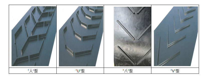表面有花紋,可增加運載物與帶體的摩擦系數(shù).花紋模板有人字形花紋,八字型花紋,點式花紋.花紋模板可定做。